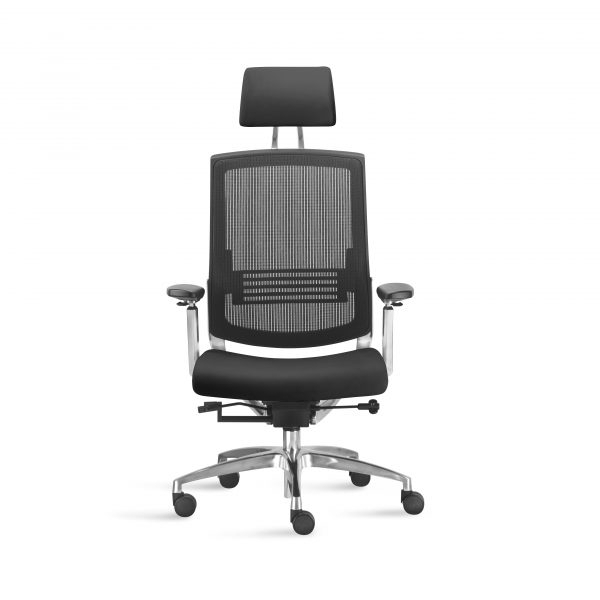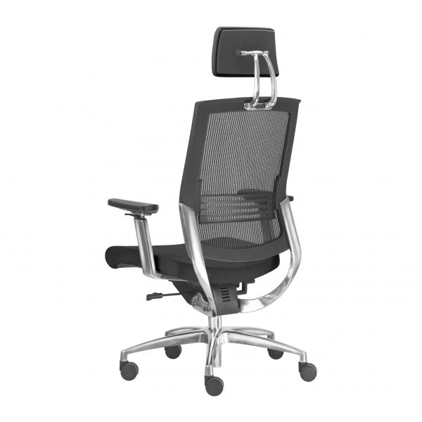 – Encosto revestido ou em tela com ajuste lombar, com opção de encosto de cabeça tapeçado.